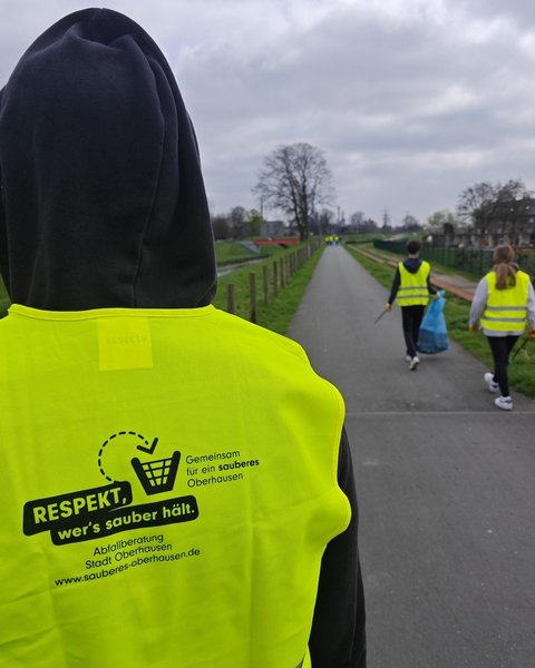 Ausgerüstet mit Warnwesten und Greifzangen machten sich die zukünftigen Chemielaboranten, Chemikanten, Industriekaufleute und Industriemechaniker für zwei Stunden an die Arbeit. Dabei sammelten sie auf der Otto-Roelen-Straße, der Bahnstraße und dem Emscherdamm ca. 100 kg Müll.