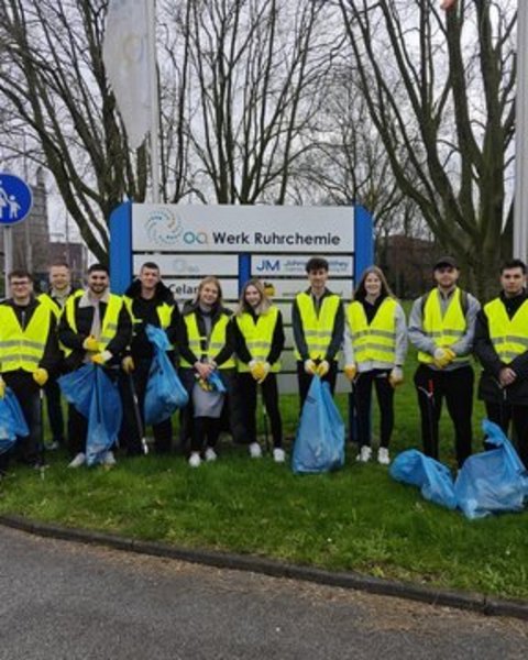 Die Auszubildenden von OQ Chemicals sind seit mehreren Jahren aktiv beim Frühjahrsputz in Oberhausen dabei. Auch in diesem Jahr sammelten 14 Auszubildende und zwei Ausbilder Müll rund ums Werksgelände.
