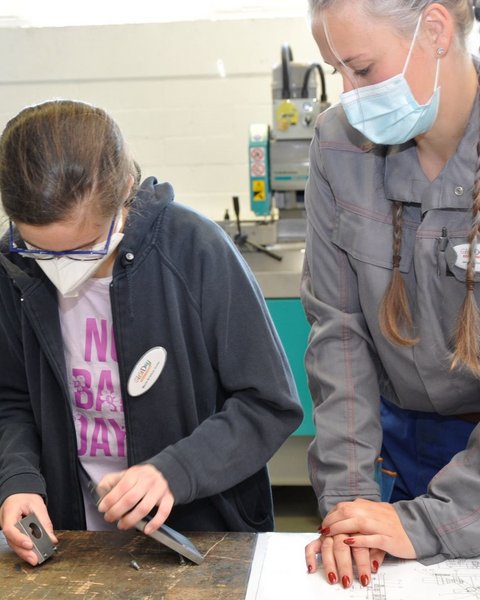 Prinzip des Girls‘Day: Die Teilnehmerinnen werden von unseren Auszubildenden – vorwiegend jungen Frauen – in den Abteilungen angeleitet und dürfen kleine Aufgaben übernehmen.