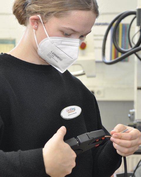 In den Räumen der Industriemechaniker hatten die Mädchen die Möglichkeit, ein Werkstück nach Zeichnung zu montieren oder einen Elektrostecker zusammenzubauen. Für eine Teilnehmerin ein Schlüsselerlebnis: „Ich wusste nicht, dass mir das solchen Spaß macht, mit Elektrik zu arbeiten.“